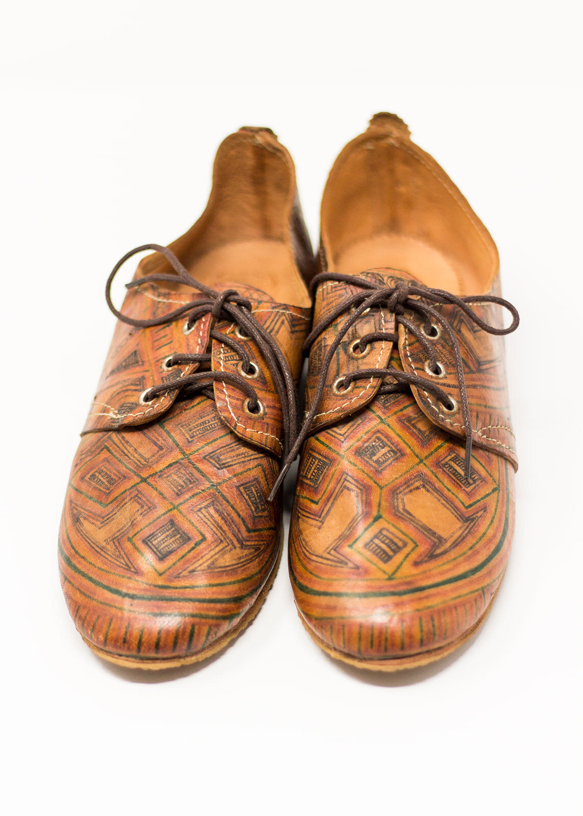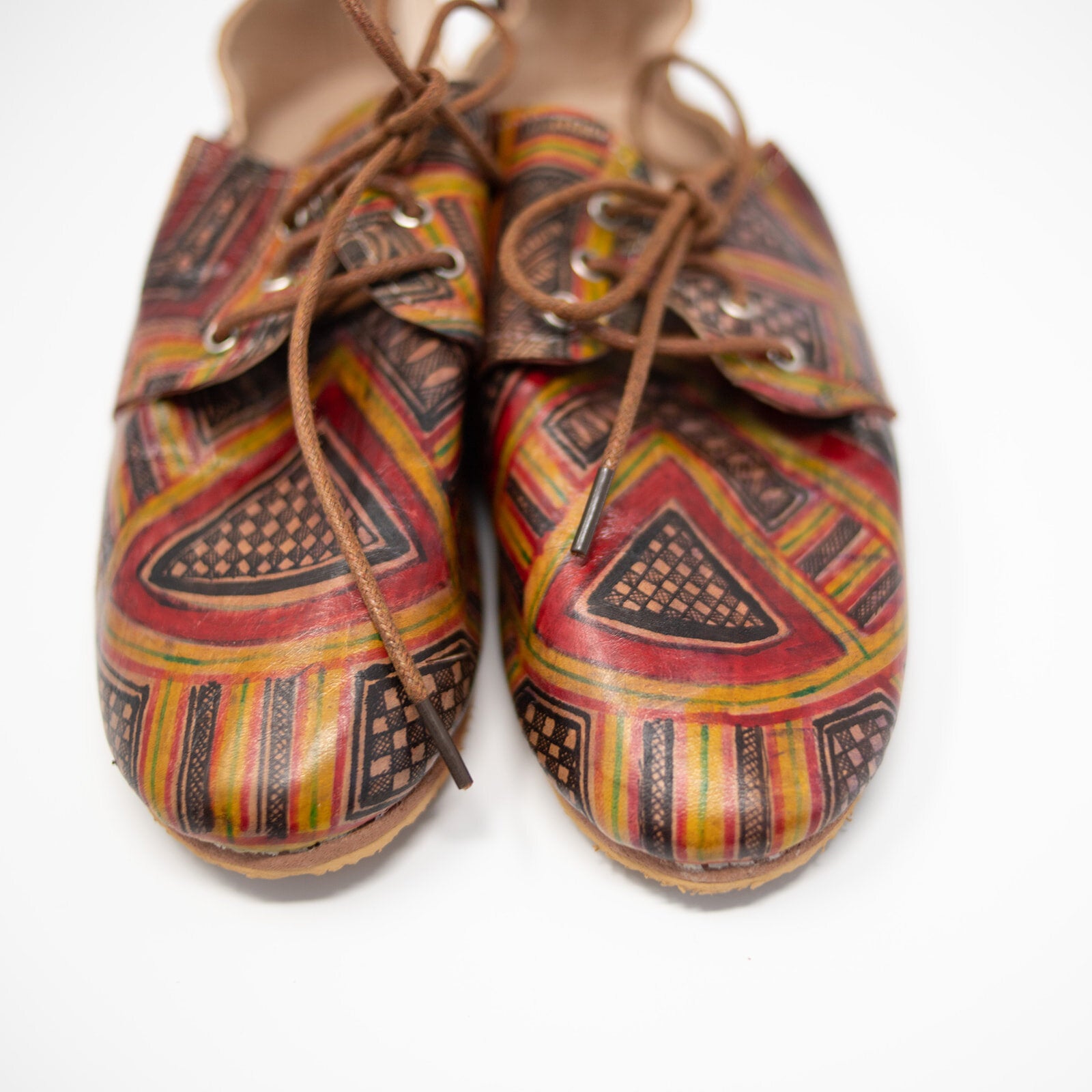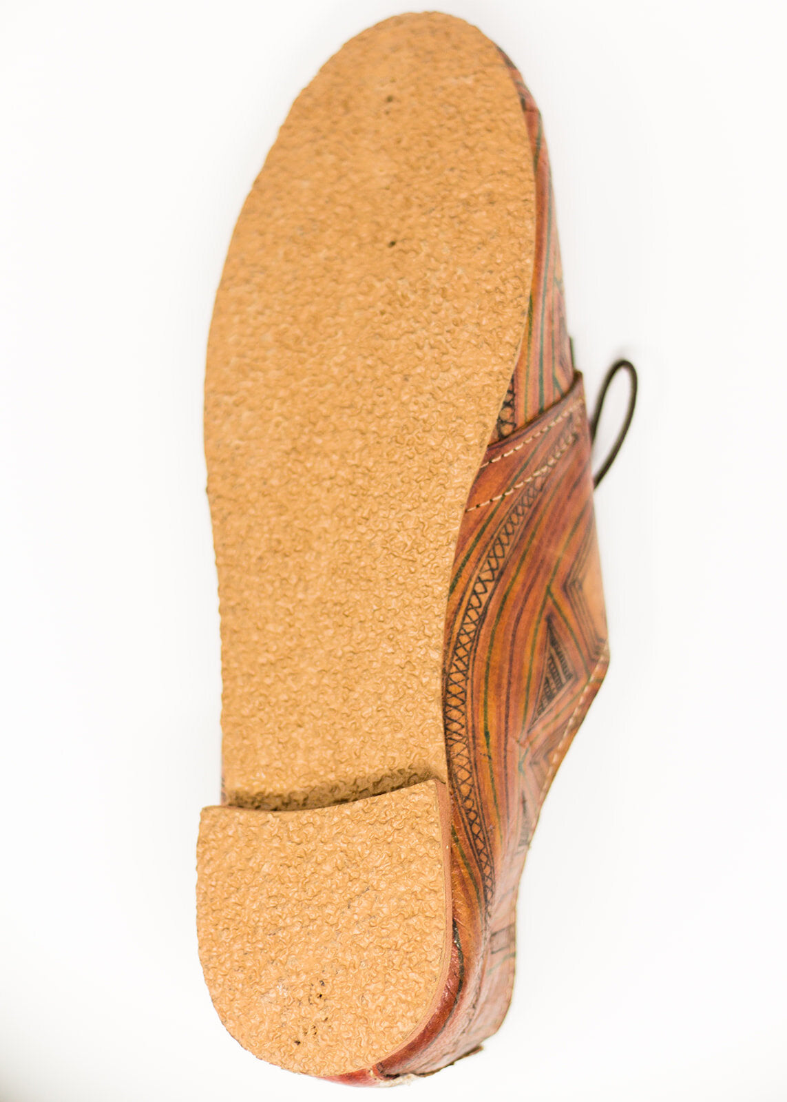 Hand painted in the Sahara desert, they are made with soft leather using traditional Moroccan tannery methods. Each shoe is unique, no two pairs are alike. European size fit